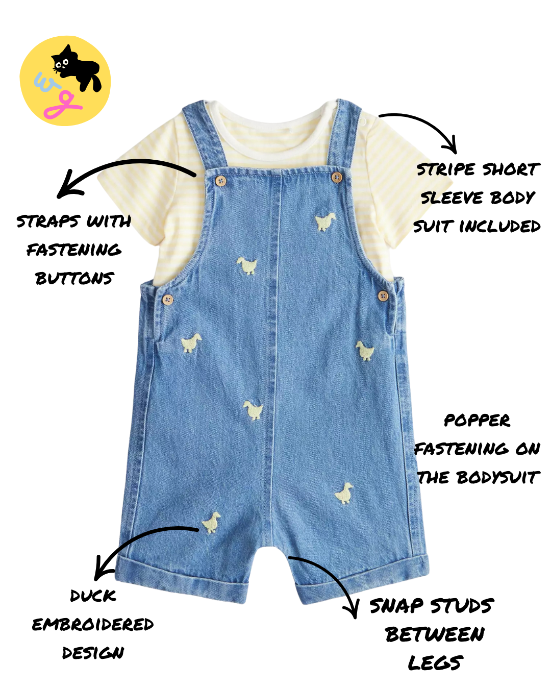 Give their wardrobe a playful upgrade with this Duck Embroidered Denim Dungarees Set, where boho chic meets everyday ease. Designed with delicate embroidery on lightweight denim, this 100% genuine piece promises standout quality and style.