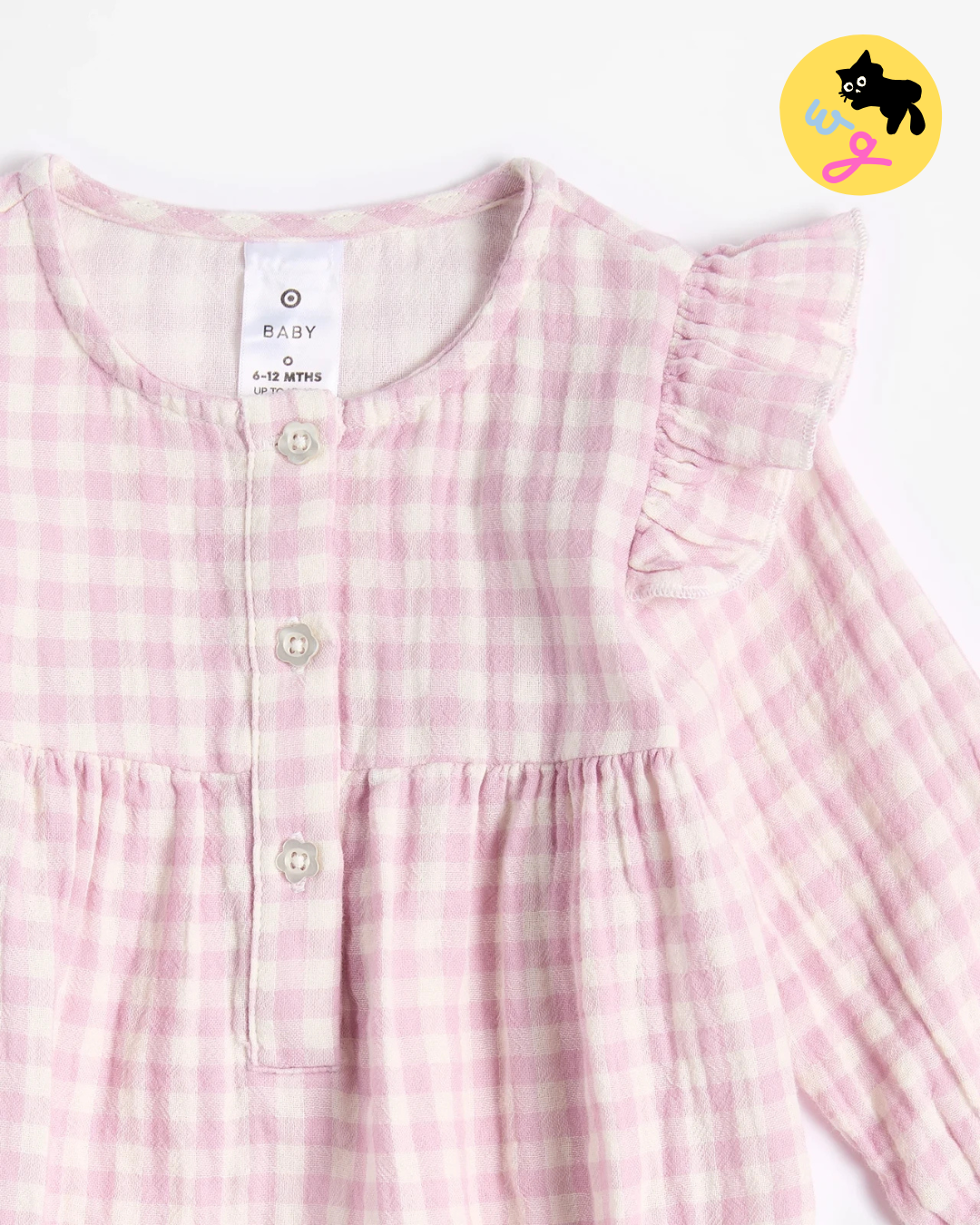 Elevate everyday style with this Purple Gingham Baby Muslin Bodysuit, a 100% genuine piece made for comfort and charm. Perfect for memorable outings, playdates, and beyond.